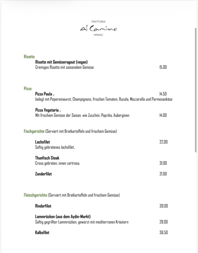Speisekarte